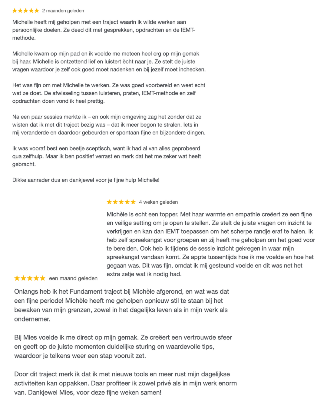 - Het traject duurt 3 maanden, bestaat uit 6 live coachsessies. Tussen de coachsessies zijn er opdrachten en houden we contact.